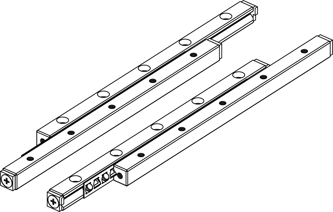 通過組裝兩排平行的 "VRG型",可以承受來自四個方向的載荷。裝配時,滾柱通過間隙調整螺栓施加預壓,因此可以作為高剛性的直線運動導向。此外,在保持架中形成的滾柱(油庫)與滾子有表面接觸,因此能更好地保持潤滑劑,從而減少金屬與金屬之間的磨損,延長使用壽命。